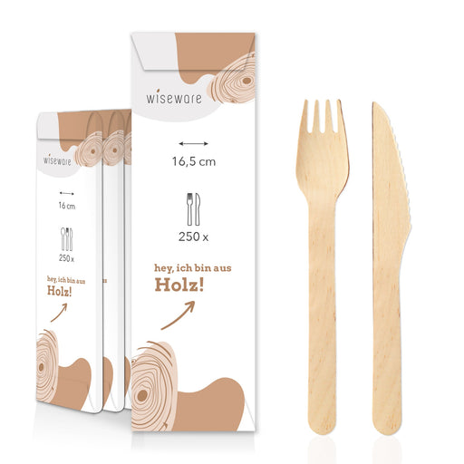 • Ménagère en bois, fourchette et couteau emballés individuellement, 16,5 cm