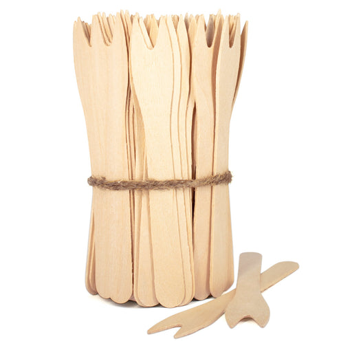 • Fourchette et couteau en bois de bouleau - 16 cm