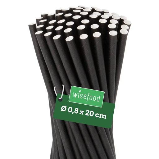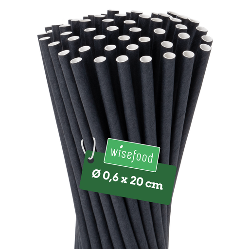 Pailles en papier 6 x 200 mm noir